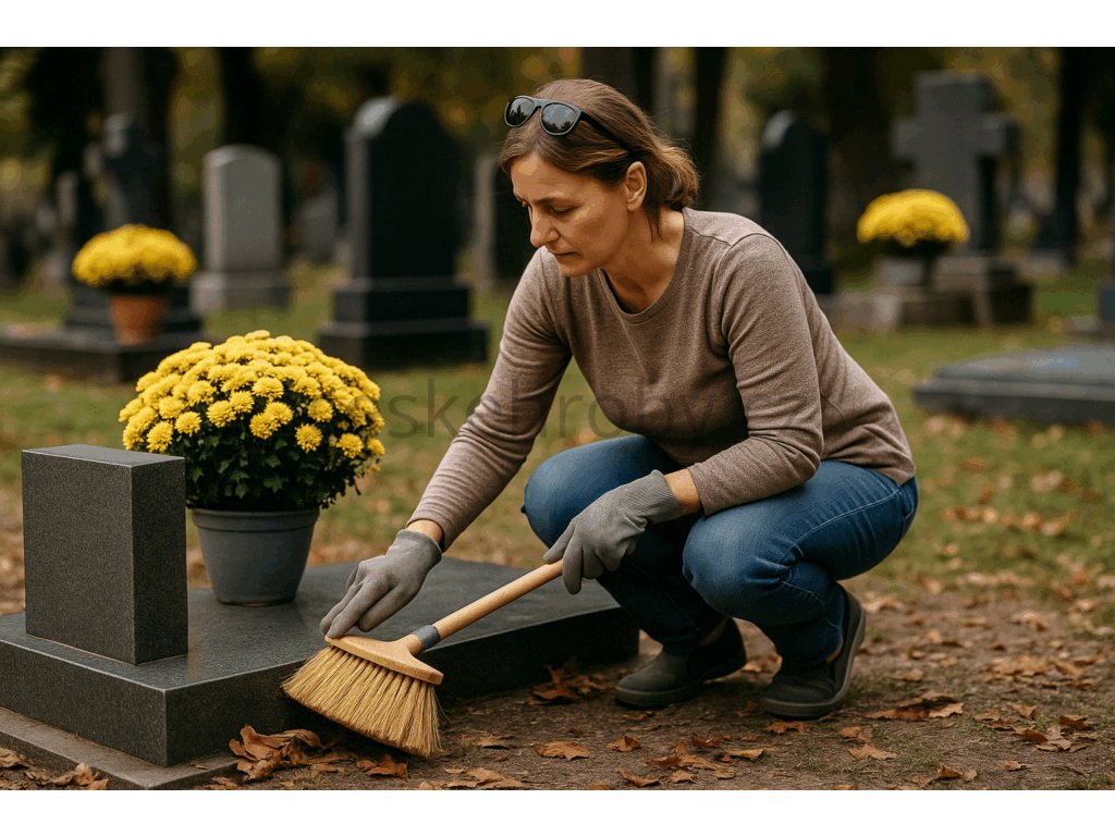 Důkladné zametení, mytí a kompletní vyčištění hrobu